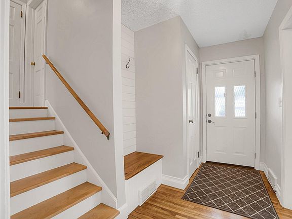 Welcome to this 3 bed, 2 bath home in Elk River! Charm and warmth await with hardwood floors, vintage detailing, and plentiful natural light coming through a marvelous bay window. Classic features continue through the quaint kitchen with scalloped white cabinetry and a cozy eat-in area. Through the dining room, find a bright and airy 3-season porch with access to the partially fenced backyard. Up a short flight of stairs are 2 large bedrooms and a spacious 3/4 bath. The primary suite is on the upper level with an attached full bathroom and plenty of storage space. The basement level offers a laundry room with utility sink included in addition to a massive storage space. Extra parking included with driveways on both sides of the lot. Located in the heart of downtown, this home won't last long. Tour today!