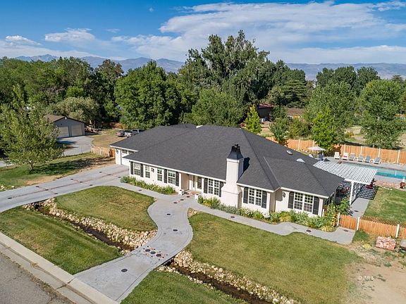 - Exterior Features: Out Buildings, Borders Creek, Swimming Pool, Lawn, Storage Shed, Trees, RV/Boat Parking, View of Mountains, Access- All Year, Landscape- Full, Pond, Fenced- Full, Patio- Covered, Sprinklers- Automatic