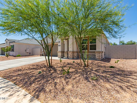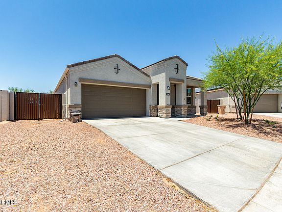 Make yourself at home in this charming 4-bed, 2-bath residence with a 2-car garage and an RV gate! Explore inside to discover a welcoming great room showcasing carpet & tile flooring and a neutral palette throughout. The lovely kitchen boasts espresso cabinetry, stainless steel appliances, a walk-in pantry, granite counters, and a center island with a breakfast bar, ideal for casual dining or entertaining friends. Continue to the main bedroom offering an ensuite with dual sinks and a walk-in closet. Outdoors, the property continues to impress with a tastefully divided backyard, including a covered patio, a fenced-in play pool, and lush grass, an ideal spot for hosting fun gatherings! Don't miss this great opportunity!