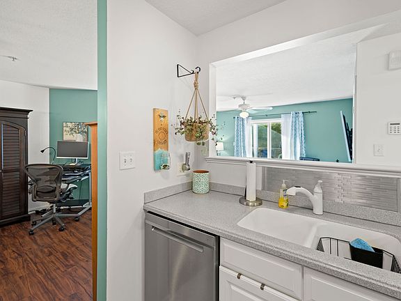 New appliances in 2018. New furnace / central AC. ONE FLOOR LIVING! vinyl plank flooring throughout. Secured building. Corian countertops in the kitchen and stainless steel appliances. New washer and dryer in unit. Central AC. Forced hot air electric heat. Private ground level concrete patio area with sliding glass door. Bike storage available as well. Comcast - High speed Internet accessible area.