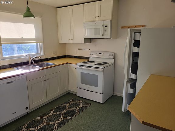 QUAINT HOME ON HUMBOLT ST. Nice location, borders Canyon Creek with water rights. Range, refrigerator, microwave, dishwasher, garbage disposal, small chest freezer, washer, dryer and air conditioner all included. Remodeled kitchen & bath, 2 bedrooms, 2 bath, wood, tile, carpet & vinyl flooring, oil furnace, large utility room w/lots of storage, metal roof w/rain gutters, carport, covered patio, landscaped, raised garden beds, sidewalks, shade tree, fenced yard, 8X10 storage shed.