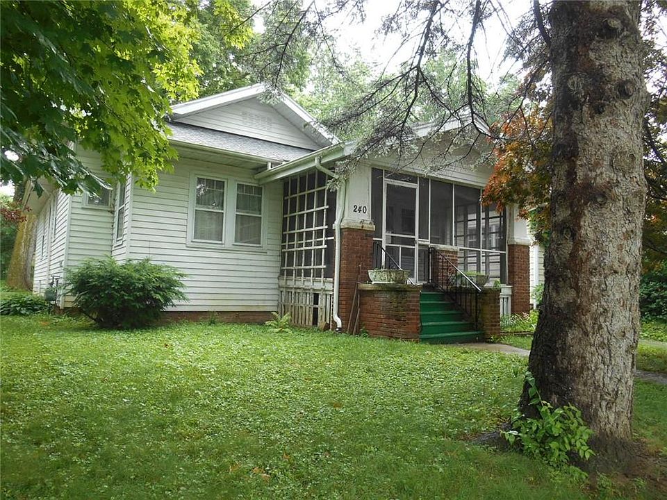 Cute west-end bungalow with aluminum siding. Spacious living room with gas log fireplace, formal dining room has a fantastic chandelier over your dining room table. Breakfast nook area in the kitchen. 2 nice size bedrooms, one has a walk in closet, hall bath has a newer tub and surround. Full unfinished basement. 1.5 car detached garage. Newer furnace, roof about 8 yrs old.