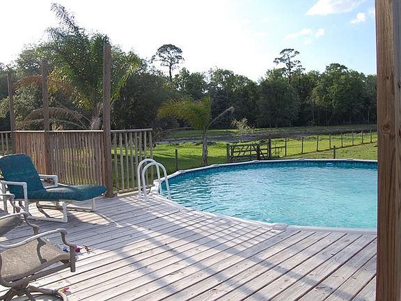This beautiful 12+ acre farm is only 60 miles from Orlando and lays upon green fenced and cross fenced grazing pastures with tropical and native plants, large ponds and even a sandy bottom Clear Creek that runs across a corner of the property. This secluded paradise includes a 4 bedroom, 2 bathroom home with a large front porch that connects to the pool. The home boasts a large open concept with 2 living areas, a large dining area along with a large kitchen with an island- perfect for entertaining. The spacious bedrooms allow for large family living without being cramped while indoors. Some animal pens , some outdoor buildings and a 30 X 30 barn, all this among tall oaks and maple trees, so bring your cows ,horses and chickens as "There is a large Chicken House"! Special note: There is a "Man Cave" on the property also or you can us it for weekend guests from out of town, shown in the pictures.