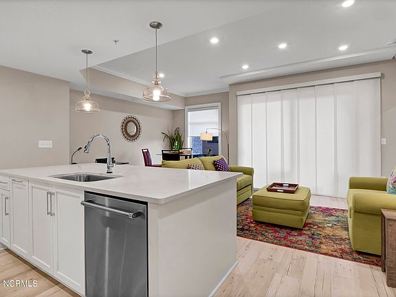 Beautiful, furnished condominium located in Downtown Wilmington's prestigious River Place Condominiums. Designer kitchen interiors with quartz counter tops, eat-in kitchen island, custom cabinetry and pantry additions, tiled back splash with lovely custom window treatments throughout. Spacious Master Bath with walk-in tiled shower, double vanity, custom shelving and walk-in closet. This home sleeps like a two bedroom with a Murphy Bed added in Den with full bath and pocket doors. Enjoy your private balcony with peek-a-boo views of the Cape Fear River, Bijou Park and City. River Place amenities include a roof top fitness center, swimming pool, community entertainment area with fabulous views of Cape Fear River and on ground level a well- appointed owners club room, concierge service and more! Enjoy the outdoor recreation of The River Walk and the abundance of fantastic restaurants, music venues, history and culture of Downtown Wilmington.