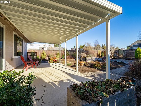 Move-in-ready single-level home with low-maintenance landscaping in the front and back, complete with a drip irrigation system and raised planter boxes. The backyard features a designated RV parking pad (43’x18’) with gated access, which could also be used as an additional patio for entertaining. A garden shed provides extra storage. Inside, you will find laminate wood flooring throughout and an open-concept living, dining, and kitchen. The kitchen offers stainless steel appliances, and the dining room features sliding doors leading to the covered patio. Efficient Cadet zonal heating keeps the home comfortable in every room. Additional features include attic storage above the garage and a newer hot water tank. This well-kept home is ready for it's next chapter!