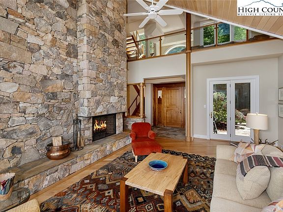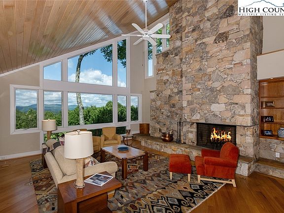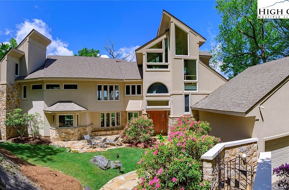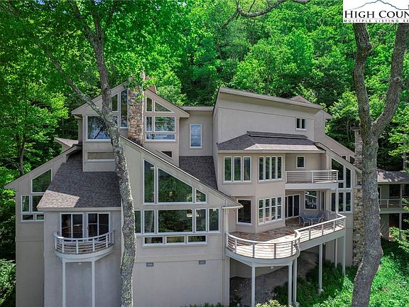 Exceptional custom built architectural designed modern mountain home is situated high in elevation on 7+/- wooded acres, bordering Moses Cone Memorial Park, offering long-range mountain views throughout. Located within the private gated community of Yonahlossee Resort & Club, this property is exquisite and just minutes from the village of Blowing Rock, providing both seclusion and convenience. The interior boasts an open floor plan with dramatic vaulted ceilings, four dry stack stone wood-burning fireplaces, and panoramic windows opening the home with natural light and amazing views. Custom cherry built-ins are a perfect marriage of form and function, while the unique third-floor observatory offers a perfect retreat for stargazing or enjoying the long-range multi-layer vistas. Heated wood and stone floors throughout enhance comfort, and an elevator servicing all three floors is an added convenience. The exceptional Master Bedroom suite encompasses the entire second floor, featuring offices for two, a wet bar, generous closets, storage, and a luxurious bathroom with an oversized shower stall lined with marble tile, a soaking tub with a view, and private commode closets. Spacious guest suites are well appointed. Two car garage and utility room. Outside, a secluded courtyard w/ natural stone outcroppings, plus expansive decking, private balconies, stone patios, & screened gazebo provide multiple areas for outdoor relaxation and entertainment. Advanced SmartHome systems offer added security & ease of living, allowing homeowners to effortlessly control various aspects of the home. This property is a testament to contemporary architecture and high-end craftsmanship, blending luxury living with the natural beauty of its surroundings, offering a unique and serene mountain retreat. Whether you're looking for a full-time residence or a vacation home, this exemplary and elegant property provides an unparalleled living experience in the heart of the High Country.
