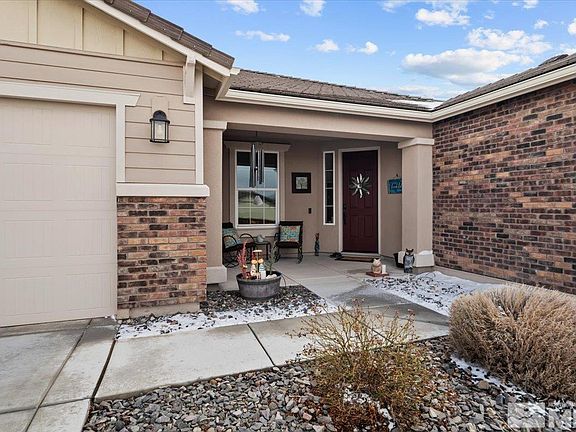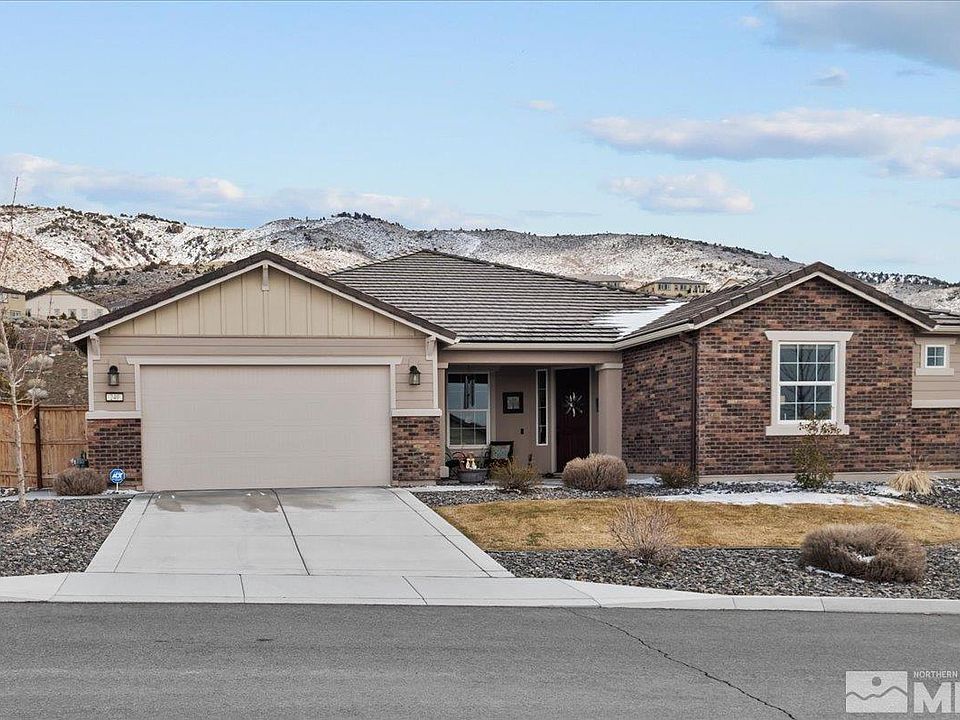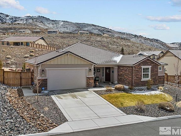 Welcome home to this beautiful Rapallo floor plan located in the Viewmont at Palisades! This home sits on a cul-de-sac in Damonte Foothills with gorgeous views of the mountains from the front porch. As you enter this home, a formal sitting room or den is to the left. The long entry way leads to the large great room, dining room and spacious chef's dream kitchen. The kitchen has stone counter tops with an island, plenty of bar seating, a double oven, gas cooktop, and a walk in pantry., The great room fireplace is wonderful for those cold wintery nights. This uniquely built custom stone-faced gas fireplace with the side shelves provides a focal point for the great room, and is one of a kind in this development. This home has a beautiful master suite with a walk in closet, dual sink vanity, large shower and garden tub. The other two spacious bedrooms are in the front wing of the home with a second full bath. A powder room is located in the wing of the home near the garage entry door, and laundry room. The laundry was upgraded with cabinets and a utility sink. The garage is a spacious tandem 3-car garage. The garage floor was recently epoxied. This home is move-in-ready, immaculately clean and has over $50,000 in upgrades completed after the owners purchased the home. A fully landscaped backyard with a pergola, and storage shed provides a great outdoor venue for entertaining. The interior of this home has a lot of natural light. This home is a must see!