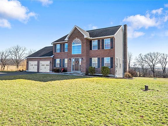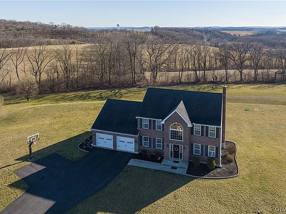 This beautiful 2-story sits on over 1.7 acres with specatular views of the countryside & hills in the distance. The open foyer, living room, & dining room are hardwood flooring. The kitchen features upgraded countertops, stainless steel appliances, island, and walk-in pantry. The sunny breakfast area includes sliders to an oversized deck & a large flat yard. The family room is open to the kitchen and has extra windows, & a stone wood-burning fireplace. Upstairs are 4 nice-sized bedrooms that share a pretty hall bath & the primary bedroom is huge with an office space & large walk-in closet. The adjourning bath has been upgraded with a beautiful walk-in shower. The lower level is a walk-out & a completely finished living space that includes the 5th bedroom, a huge recreational room with a custom bar & gym. Easy access to Rte 61 & I-78 for commutes East & West. This is a fantastic opportunity. Schedule your appointments today.