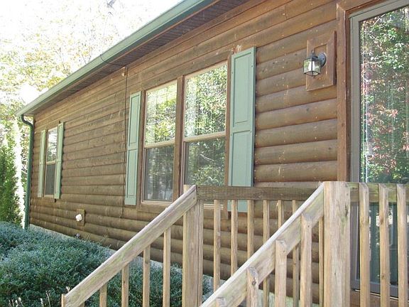 **Large one-level 2 bedroom/2 bath home with no-step entry off side deck from double carport. **Large room off Great Room could be office or guest space.**Log siding on exterior fits perfectly in heavily wooded 2 acre property.**Manufactured home on permanent foundation is taxed as real property.**Open Great Room with wood-burning fireplace, kitchen with island & dining area.**Large Master suite with 2 walk-in closets.**Large guest bedroom and smaller 3rd bedroom could be an office.**Large covered deck, front porch at the entry and small deck in the rear.**Delightful landscaping in glorious bloom in the spring and summer seasons.**Close to John Campbell Folk School and medical facilities at Peachtree.**