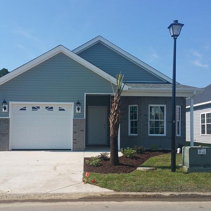 ON-SITE MODEL OPEN DAILY. This is a Molly plan on a lake lot. Several other plans under construction, usually with some MOVE-IN READY or within thirty days from completion. Palm Cove is an exciting new home community on Palmetto Point Boulevard, just across Hwy 17 Bypass from the Withers Preserve and Market Common area. This great location gives you quick access to the beach; Market Common; Crabtree gym and recreation areas, walking areas, and ball fields; Coastal Grand Mall, and just about any location on the beach, since you have stoplight access to Hwy 17 Bypass. Unbelievable low prices for such a great location, and take a look at all of these STANDARD features included in the price: 9-foot ceilings, brick accents plus low-maintenance vinyl siding, tile flooring in kitchen and baths, granite kitchen counter tops, upgraded cabinets with slam-proof and self-close feature, garage door openers, ceiling fans with light package in all bedrooms and living room, custom trim package including full wood trim (instead of just a sheetrock return) on all windows, sprinkler system included with fully landscaped yard. WOW!! Good-looking and functional, and lots of extras for no extra charge!