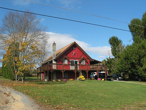 This sweet chalet has it all... 3 cozy bedrooms; open-plan living; fireplace; wraparound deck; 2-car garage; above-grade, walk-out lower level; open views, on a sunny half-acre near Beltzville State Park. Convenient to shopping, highways, Pocono attractions. Relax evenings by your propane fireplace, or start your day sipping coffee and enjoying the country view. And there's plenty of room for entertaining on the partially-covered deck. Living spaces are located on the main floor, while the upper-level bedroom and loft provide additional living or home office space as well as a charming balcony overlooking the sunny backyard. The cavernous lower level provides endless possibilities - family, rec. room or possible in-law quarters. The current owners made many improvements... (continued)