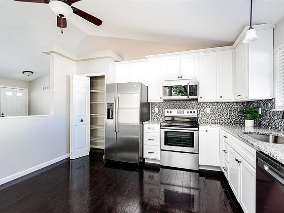 - Kitchen/Dining Room Combo, Open Floorplan, Vaulted Ceiling(s), Lever Faucets, Shower, Eat-in Kitchen, Granite Counters, Pantry