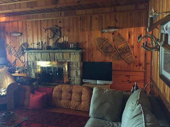 This charming lake-front cottage is in move-in condition and includes wooded lots bordering 75 acres of association-owned woods. All the 50's charm is enhanced by modern upgrades in kitchen and bath. Two fireplaces allow enjoyment from the living room and screened-in porch. The new sunroom features passive solar heat. There is a detached 2 car garage and an artist studio on the back lots.