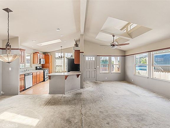 Welcome to this charming Newport Beach residence, nestled within the sought-after Bayside Village community. This 1,313 sqft gem boasts high vaulted ceilings and abundant natural light through multiple skylights, enhancing the spaciousness of the open living spaces. The cozy fireplace, double pane windows, and recessed lighting further elevate the ambiance. The open kitchen, complete with a ceiling fan, invites culinary creativity and relaxation. The property features two bedrooms and two bathrooms, including a generous master bedroom with a walk-in closet and an en-suite bath with a built in bath tub and dual sinks. Built in 2005, the exterior boasts a beautiful facelift, highlighted by a new front porch. This residence is perfect for those looking to infuse their own personal style and make it their own while enjoying the convenience and allure of Bayside Village living. Land Lease is $3,000/month.