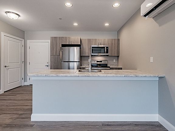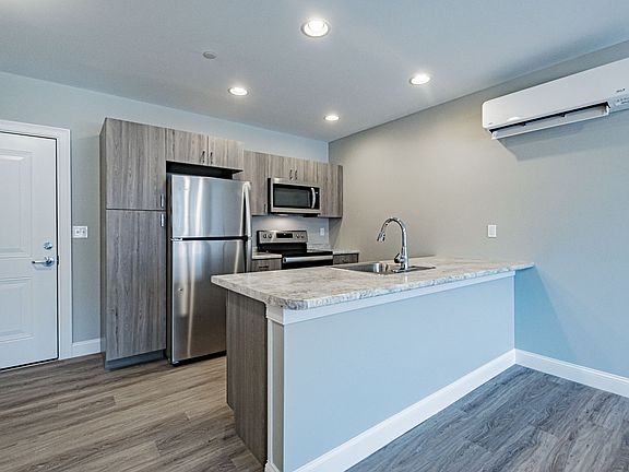 1 bedroom, 1 bathroom apartment. Extremely energy efficient; featuring open concept living, fully appliance kitchen, stainless steel appliances, kitchen island w/recessed lighting, washer & dryer, air conditioning, ceramic tile in bathroom, wood-style flooring throughout, modern design, ceiling fan, spacious closet, high-speed internet available, public water, walk-in shower w/ seat, nature trail, barbecue patio, no maintenance (services to include snow removal, mowing, landscaping), privacy control wall & ceilings, private wooded location, yet right off route 302. *All applicants subject to credit and background check. Please call 207-647-RENT (7368) for additional information and availability. Pictures shown are from similar unit. One year minimum lease. First month and security.