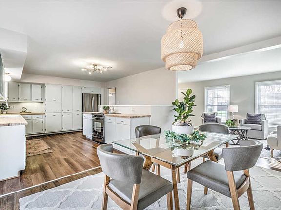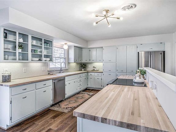 GORGEOUS RENOVATED ranch w/ WALKOUT LOWER LEVEL, situated on fenced lot with INCREDIBLE VIEWS overlooking 30 acres of PARK LAND (playground, pond, creek & walking trail). Backyard gate opens directly to park w/ seasonal color & texture for amazing year-round vistas. GENUINE HARDWOOD flooring. Pinterest-worthy kitchen features GENEROUS CABINETS, classic butcherblock countertops, PENNY TILE backsplash, cast iron sink, NEW STAINLESS dishwasher & counter-depth refrigerator. Step out to freshly-stained deck, patio, & FIRE PIT â ideal for FRESH-AIR ENTERTAINING. Preserved original colorful floor tile bathrooms. Walkout lower level rec room (new French doors), half bath, storage & laundry with sink/folding area. Newer, efficient HVAC & water heater. OVERSIZED 2-car garage has A/C, drywall & insulated garage door w/ ultra-quiet opener. Storage shed + extra area for RV/toys/equipment. Unincorporated location w/ FEW RESTRICTIONS. Near Katy Trail & highways 364/94. Agent owner.