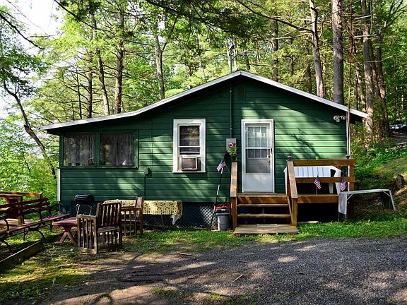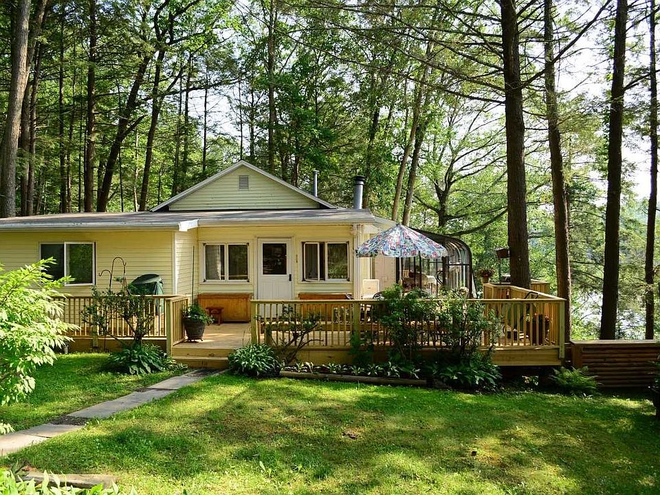 Own two homes side by side on beautiful Lake Katrine with separate access to boat/swimming docks! Well maintained 2 bedroom bungalow with brick fireplace, 4 season solarium & large new deck with lake views. Pine wood floors in living and 2nd bedroom, parquet in solarium and carpet and tile in the remainder of this private home. New furnace, central air, cable, built-in shelving and pine wood paneling. Space efficient kitchen with ample wood cabinets and recent washer/dryer in partial basement. Additionally, rent out or use as guest space the 576 sf one bedroom cottage, completely renovated in 2005 with tile floors, open kitchen and a 24' x 10' screened porch with lake views. A full-time residence or getaway close to Kingston, the gateway to the Catskills!