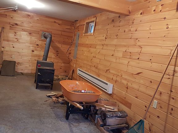 This is a nice rustic looking cabin with all the creature comforts of home nestled in1.231 acres with views of woodlands and fields, nature abounds here. Private setting. 2 bedrooms, loft attic space, full bath, laundry and open kitchen/dining living room. Knotty Pine throughout and pleanty of space in the basement for storage, autos, atvs or redo into a family room! Lots of potential up here, shared entrance from Quimby Road with upper camp. Dishwasher (does not work), stove, fridge, washer, dryer, woodstove all stay. This is an all electric home.