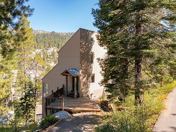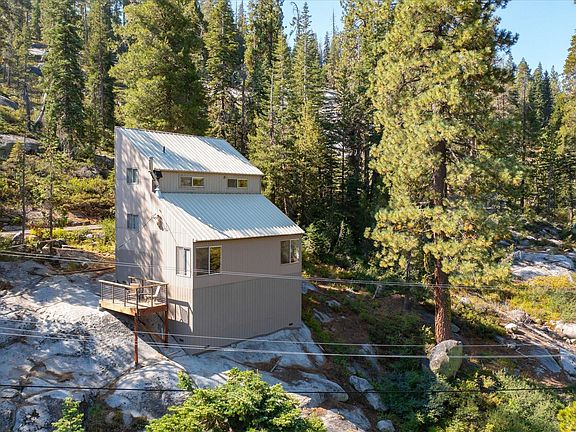 Discover the magic of this unique and custom owner built cabin located behind the iconic Rainbow Lodge, with panoramic views of the Yuba River and stunning granite landscape. Situated beautifully on a granite hillside, in this wonderfully tight-knit Rainbow community. Easy access to a large swimming hole and endless trails. Enjoy the perfectly clear and deliciously tasty Rainbow Spring water. This 2 bedroom, 2 bath cabin with expansive ceilings, is light and bright. Beautiful wood flooring in the kitchen, dining, living room, and spiral staircase. Linoleum is in pristine condition. The roof has been replaced this year, and the septic was installed in 2016. Detached 2 car garage and a snowmobile shed. There hasn’t been a cabin on the market in this spot in a very long time.