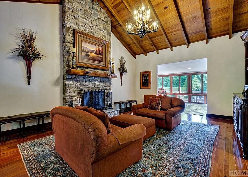 They don't make them like this anymore! If you're dreaming of a spacious mountain home with a gorgeous yard and room to roam, look no further! Located in a private setting surrounded by mature landscaping on a double lot, this quality-built 5 bedroom, 3 bath, 2 half bath retreat located in Round Hill Estates is a perfect year-round or vacation home. Sited on 2+/- level acres, you'll appreciate the views from the open and covered back deck of the pond and sounds of the cascading water feature. Big and beautiful, this approximately 6,000+ square foot home greats you with a gentle approach. As you enter through the front door, you're met by a cozy living room with a wood-burning stone fireplace to the main level sitting room that lets in views of the landscape. Then the large kitchen opens to a formal dining room and family room with another wood-burning stone fireplace and adjacent office/library which is perfect for the work from home enthusiast. You'll love entertaining with this split floor plan housing the private master suite with his-and-hers full bathrooms and walk-in closet on one end and 2 guest rooms with jack-and-jill bathroom on the other. The main level also boasts a spacious mudroom and access to the 3-car garage. As you descend to the lower level, the billiards area and media room leading to the outdoor patio steal the show! This level also features 2 guest bedrooms, a full bathroom, and private sitting room. From the lower patio, step out to the verdant back yard where you can continue to venture on a short walk-about to Fairfield Lake or hop on your golf cart to access the private cart path into Country Club of Sapphire Valley (membership by invitation) and Sapphire Valley Master Association amenities (joining is optional). Behind the scenes features include: high-speed cable internet, community sewer and water, whole house generator, encapsulated crawl space, security system, and much more. This unique mountain home won't last long!