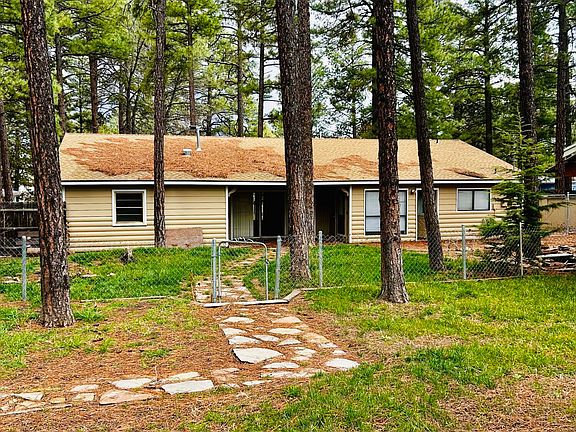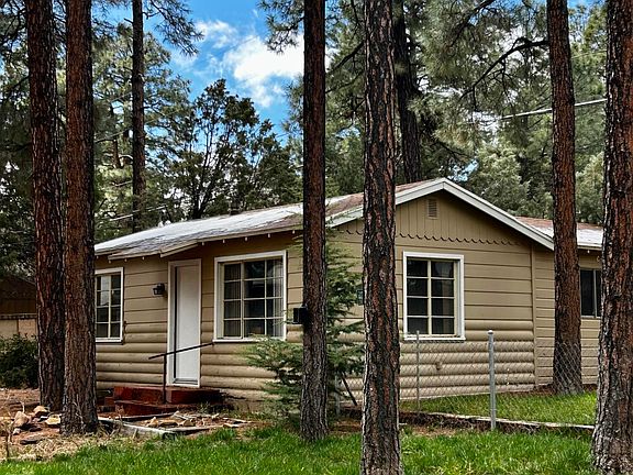 What's better than a home in The Pines? Two Homes! This is a fixer upper that is a true diamond in the rough just waiting to be transformed into your dream home or vacation property. Surrounded by towering pines, this property offers both privacy and tranquility while still being close to shopping & the City Park. The main house features 2 bedrooms 1 bath, a spacious kitchen perfect for entertaining, and a cozy fireplace in the front room. The casita is a 1 bed/1bath with kitchenette but needs the most repair. The outdoor space is wooded, covered patio, covered porch ideal for enjoying the fresh mountain air, 2c garage and shed all in a NO HOA neighborhood. Plenty of potential, don't let the opportunity pass you by!