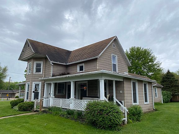 Four bedroom, 2 story home in Dakota. Large kitchen, with formal dining room. Master bedroom on main floor with full bath. Kitchen plumbed for washer or stackable washer/dryer. Mud room off kitchen has electric service. Three large bedrooms upstairs with a half bath. Detached 22' x 26' garage built in 1965 with a lean to added. Dimensions of lot subject to survey. Sold"'as is"