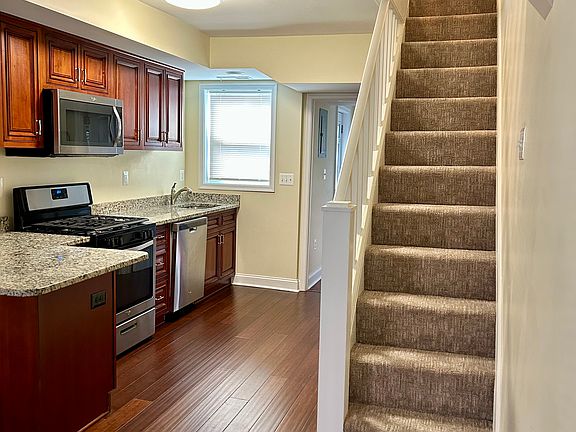 Recently renovated Upper Fells Point Townhouse located on Billie Holiday Row. Close to Johns Hopkins Hospital, Patterson Park, restaurants, shopping, transportation, and more. Hardwood Floors in Living Room, Dining Area, Kitchen, and Bedroom. Spacious Home Office off of bedroom. Bathroom with ceramic floor and large window. Kitchen with stainless appliances, gas stove/oven, cherry cabinets, granite counter tops, and breakfast bar. Nice back yard with privacy fence. Laundry Room with washer/dryer. Bright light filled house in a nice neighborhood, very quiet. Energy efficient heat pump with central air conditioning. Energy efficient appliances. Energy efficient windows. Please note that this home is one bedroom and will accommodate 1 person or a couple. There is one bedroom and an office area between the bathroom and the bedroom. One month security deposit and one month rent in advance. Tenant pays all utilities, including gas, electric, and water/sewage. BGE is approximately $100. a month. Water is through Baltimore City and is approximately $50. to $60. a month. No pets. Showings by appointment. Please submit application.