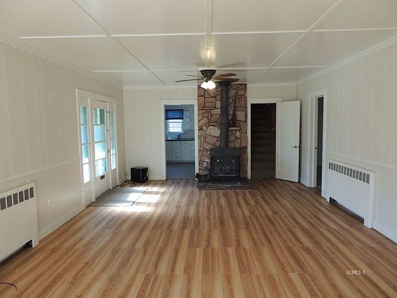 - Interior Features: Ceiling Fans, Wood Burning Stove, Flooring- Carpet, Flooring- Laminate, Flooring- Linoleum