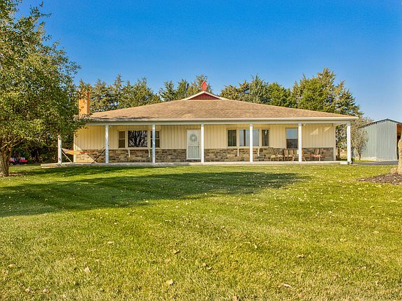 Built in 2006 on 1.9 acres, this home has over 3000 ft., four bedrooms and two full bathrooms. Plenty of storage in the 2 1/2 car attached garage and outbuildings. Large covered inviting front porch is 10' x 64' long and is a great space to enjoy the outdoors. Large open floor plan with dining room space, kitchen and huge living room with wood-burning stove. KitchenAid stainless steel appliances, granite counter tops, good amount of storage cabinets, and island that overlooks the dining room. This home has been set up as a 3/4 bedroom home. Lots of storage areas and spacious rooms. Outdoors several storage buildings great for storage of cars, workshop barn, and open covered space for parking trailers or boats. Home has Heat Pump heat and air. Home has a whole house gasoline fired generator. No front or rear neighbors.