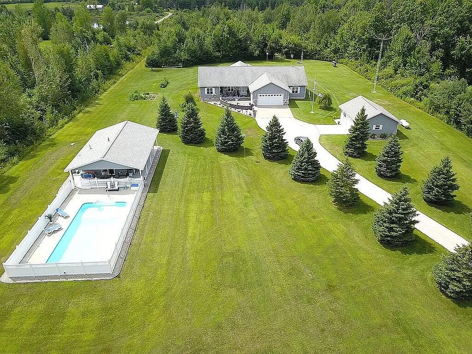 Stunning and meticulously maintained custom-built home on 9 acres. This property has it all from the Amish-built custom cabinetry to the pool house and detached garage/workshop to the beautiful 9 acres with trails, food plot areas and a very nice pond toward the back of the property. The home is approximately 2,700 square feet with a 24'x26' 2 car attached garage. The detached garage/workshop is 24x32. The home and detached garage were custom-built in 2005. The 24x32 pool house was built in 2012 and the 18x36 in-ground swimming pool was added in 2014. --See more Stunning and meticulously maintained custom-built home on 9 acres. This property has it all from the Amish-built custom cabinetry to the pool house and detached garage/workshop to the beautiful 9 acres with trails, food plot areas and a very nice pond toward the back of the property. The home is approximately 2,700 square feet with a 24'x26' 2 car attached garage. The detached garage/workshop is 24x32. The home and detached garage were custom-built in 2005. The 24x32 pool house was built in 2012 and the 18x36 in-ground swimming pool was added in 2014. No stone was left unturned from the landscaping to the entire 10-zone sprinkler system, to the Generac whole house generator, new water softener system, new state-of-the-art pool pump system, and all new flooring in the house to the paved driveway that winds back to your private retreat. As an added bonus natural gas is also now available and can be hooked into if someone wishes to upgrade from propane.There are trails and a couple of open areas that would be perfect food plot locations for the hunter and the pond toward the back is a great feature for the wildlife. Tons of cover and awesome habitats for deer, turkey and all wildlife to call home.Whether lounging at the pool, sitting in a deer blind, sitting by a campfire with family, enjoying your garden or having a nice cup of coffee watching the wildlife out your window, this property has something for everyone. Call today for your private showing.