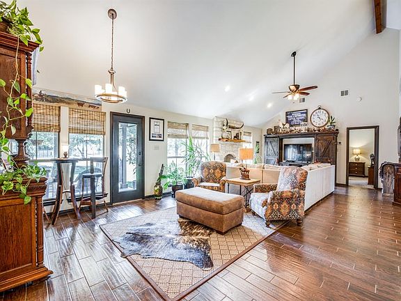 This updated home in the sought-out Silverado on the Brazos is the best of country living. There is plenty of room to roam on the 2+ acres of manicured land with a 30x40 pull through workshop & fenced backyard. This versatile floorplan is open & perfect for entertaining while still providing privacy with split jack&jill bedrooms. Secondary space could be used as a playroom, second living, or bedroom. Recent updates include: custom island, countertops, backsplash, farmhouse sink, custom Talavera sinks in bathrooms, wood look tile, carpet, stained concrete patio, driveway to shop, landscaping, light fixtures, sidewall added to main driveway, interior paint, sod, septic pump & agitator, & fence.