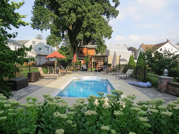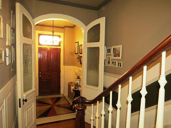 Beautiful historic home in Pine Grove! Walk up the front steps, pause to look at the most beautiful door you have ever seen, and step into the foyer with curved, etched glass doors and a stairway that winds its way up to the third floor. A parlor sits to the right with original shutters, hardwood floors and double doors leading to an office. The kitchen has been completely renovated with custom handmade floor to ceiling cabinets, hardwood floors, pantry, new appliances, two sinks, Corian counters, custom painted mural, and many little surprises as you explore all the cupboard doors and drawers. The dining room, with its very own fireplace, has hardwood floors, wood ceilings, a hand painted mural, built-in hutch and plenty of space. The great room has floor to ceiling windows, with hardwoodfloors and a view of the peaceful, pleasant back yard complete with two paver patios, an in-ground pool, and a towering, and rare elm tree. A bathroom/laundry room and many closets, nooks and crannies, complete the first floor. A walk up the beautiful stairway takes you to two completely renovated full baths and three bedrooms on the second floor. The master bedroom, overlooks the rear and side yards (and that awesome elm tree) and has its own full bath with walk in tiled shower. The adjoining room could be used as a nursery or sitting area. A walk up the steps to the third floor brings you to a quaint sewing room and two more cozy bedrooms. With all the custom details, it's hard to notice that the home has a central air split system on two floors, economical coal heat, has been completely waterproofed, has a two car garage with electric and water and several off street parking spaces, two awesome customer paver patios to relax on complete with pergola, and a beautiful sparkling in-ground pool to cool off in, meticulously cared for landscaping with flowering trees and shrubs, original and custom made shutters on all windows, custom moldings, custom hand painted murals, ten foot high ceilings, custom lighting and original chandeliers, built-in cupboards and closets in almost every room, ceiling fans, working fireplace, and laundry on first floor. Potential exists to easily turn dining room or great room into an office with separate entrances and bathroom facilities.