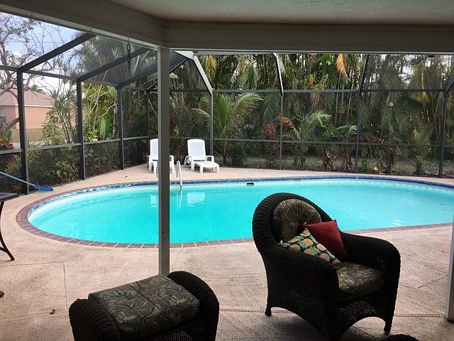 In real estate, the keyword is "location". Situated on a corner lot - in the heart of Cape Coral, this 3 bedroom/2 bath pool home is ready for you! White kitchen cabinets give the kitchen great air and light, but with plenty of storage. You'll love the privacy the landscaping brings to the backyard, screened lanai and pool area. Wake up and look out to the pool from the master - this is Florida living! Close to shopping and quick access to Fort Myers from Veterans Parkway. Schedule a showing today!