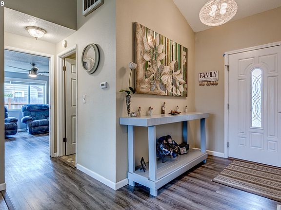Nicely updated single level home nestled in quiet community. Spacious layout, large living room with vaulted ceilings, & second living room with wood burning fireplace. New flooring throughout main living area & updated bathrooms.Remodeled kitchen in '17-new cabinets, granite counter tops, island, paint,flooring. Large back yard ,with fire pit & shed.A few blocks of the Canby swim center & local schools. Qualifies for 0% down USDA loan!