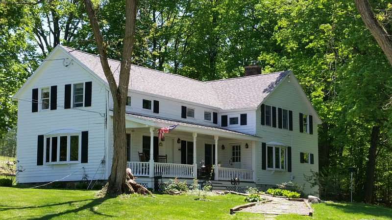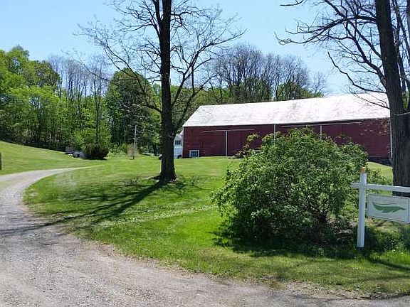 Picturesque Farm, 105 beautiful acres. Classic & gracious describe this home: 4 bedrooms, 3 full baths, hardwood floors, 2 wood stoves, & large dining room, totally updated. Looking to relax in a quiet country setting, for a bed & breakfast or retreat center, a working farm or horse property? This is a must see! Lovely views, fields, fenced pastures, 2 ponds, woodlands, gardens. Outbuildings: Milk house, greenhouse, 6 stall horse barn, several large barns. Currently a farm & maker of fine goat cheese.