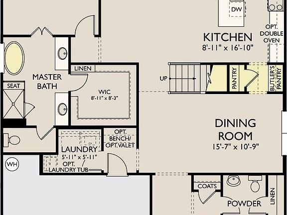 - Bathtub/Shower Combination, Pantry, Double Vanity, Eat-in Kitchen, Entrance Foyer, High Ceilings, Master Downstairs, Quartz Counters, Smooth Ceilings, Soaking Tub, Walk-In Closet(s), Walk-In Shower