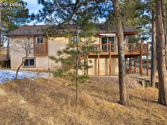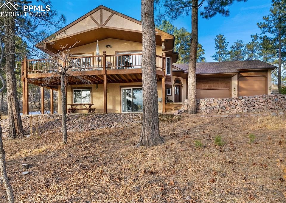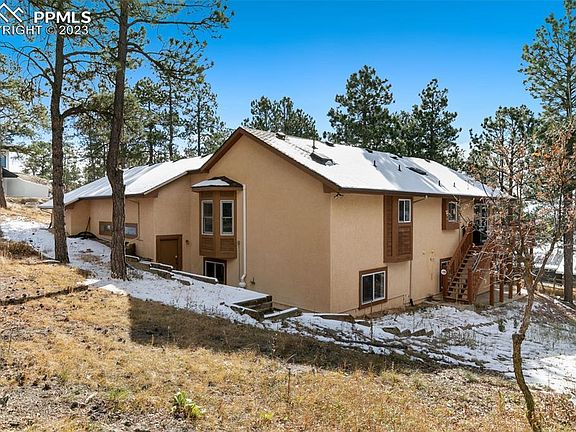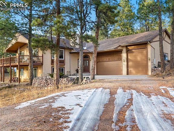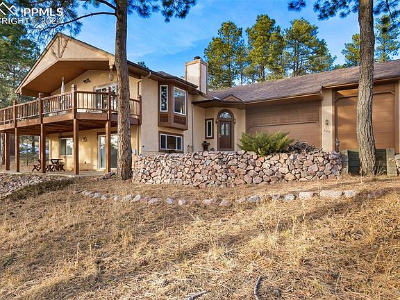 Discover Hidden Potential in Woodmoor! Nestled in the tranquil, wooded landscapes of coveted Woodmoor, this 1994 custom built gem is brimming with untapped potential! Set on a generous 0.71-acre lot, the property offers an expansive view of mountains, including beautiful views of Pikes Peak, from a delightful deck - perfect for soaking in the scenery. The residence has 4 bedrooms and 2.5 baths across a split-level style home. Upstairs, the primary suite invites relaxation with an attached en suite featuring a jetted tub. Downstairs, 3 sizable bedrooms ensure ample space for all. The walkout basement is a canvas waiting for your personal touch. This home also has a beautiful wood burning fireplace for those cozy Colorado nights! Outdoors, an enormous RV garage accompanies 2 additional garage spaces (which are heated!), ideal for the adventurer or hobbyist. Embrace the opportunity to transform this well-loved home into your dream retreat amidst Woodmoor's natural beauty. This home to allow your vision to come to life!