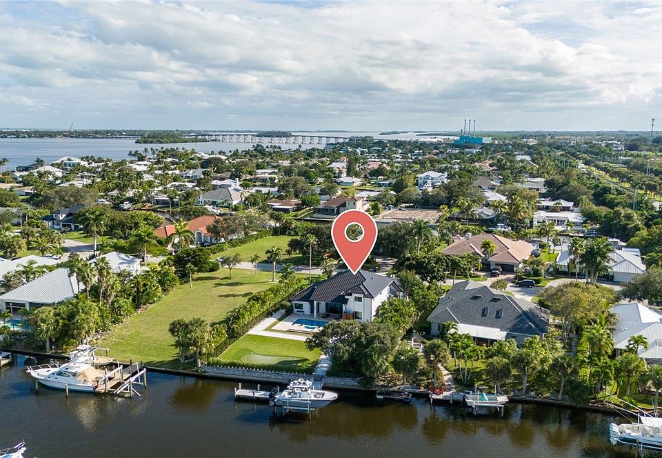 An exquisitely re-imagined waterfront residence on one of the largest lots in Vero Isles. Completed in 2025, this 3,382 sqft estate blends craftsmanship, innovation, & modern elegance. The stately entrance w/ pivot front door opens to a two-story great room, travertine floors & expansive water views. The chef’s kitchen features luxury appliances. The primary suite offers a state-of-the-art walk-through digital rain shower. The resort-style backyard includes a heated saltwater pool & spa, fire bowls, putting green, & a brand-new dock w/ lift, plus deep water access all in an ideal location.
