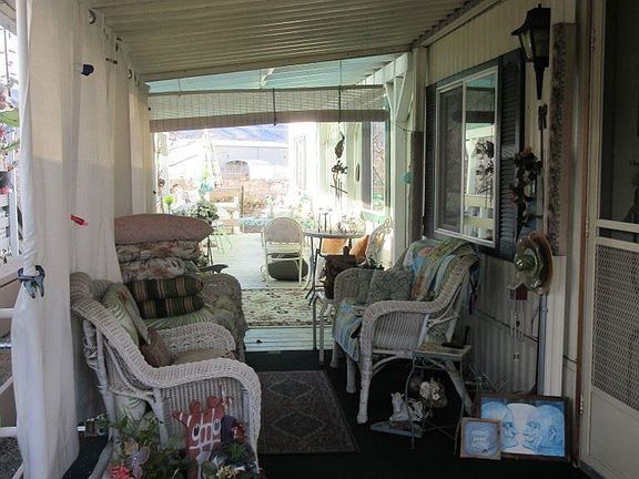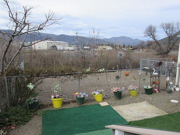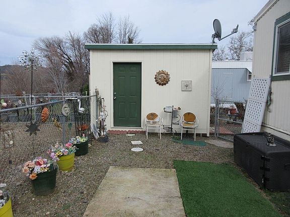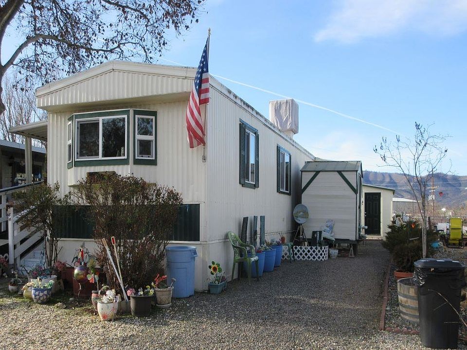 Delightful setting for this well maintained mfg home, in a park, close to the casino. 2bd 1ba home has dual pane, vinyl windows and carpet and vinyl floors. The kitchen features a stainless sink, and plenty of cabinets. A bow window here looks out at the park. In the rear a fenced yard backs up to the seasonal creek (Yreka Creek). There's a two-compartment shed here too. The home has a 60 ft long, partly covered, deck. There are stairs and a ramp to the deck. The master bedroom has large windows framing the lovely view. In the living room there is a built in hutch. Seller says this is a lovely, quiet neighborhood, and is only moving to be with family