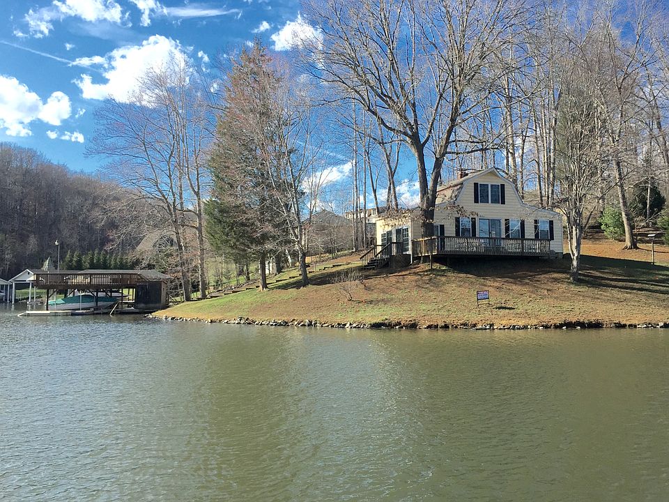 This Lake Cottage has a Beautiful 2.4 Acre Point lot with views out to the Main Channel and 213' of Lakefront, 3 Bedrooms, 2 Full Baths, Living Room with Stone Fireplace, Sunroom, Sold furnished, Oversized 32' x 48' Garage with extra Tall Doors for RV, large Storage Shed, Covered Boat Dock with Upper Sundeck, New Windows, New Roof, Fully furnished, Great Location close to Westlake Area! Covered boathouse with Upper Sun Deck,