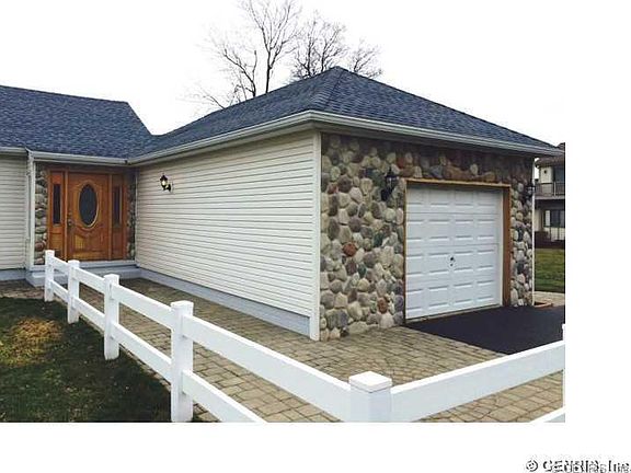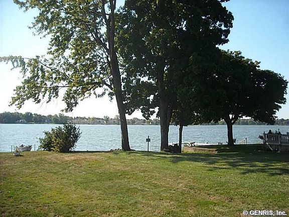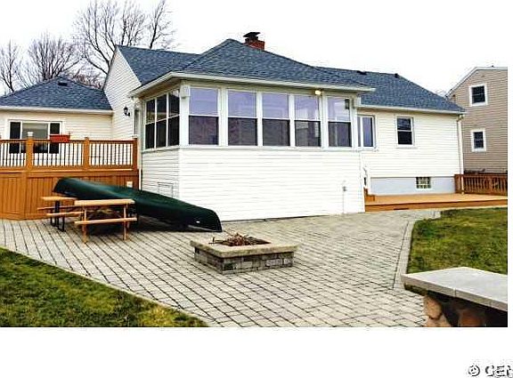 RARE! Water front: 120 ft wide lot with additional right of way opening. 3 bedroom Ranch with many upgrades including 3 decks, paver patio, new custom kitchen, windows, super attractive stone front. New roof in 2015. Enjoy the water views from the breakfast room & the large living room with a gas fireplace. Alumium dock included. Real Bonus: A Full Basement!! Swing not included.