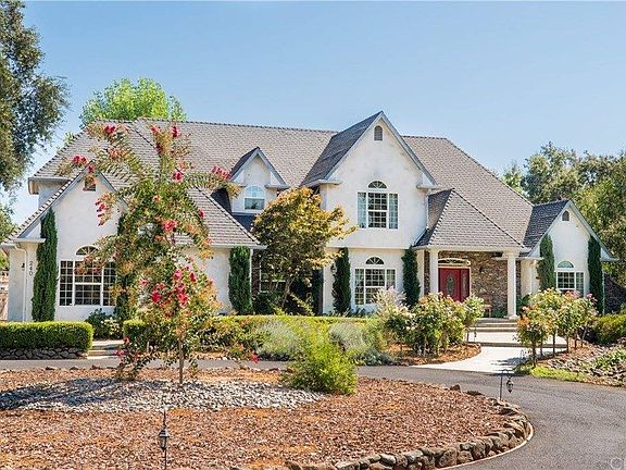 A beautiful French Chateau resting on over an acre offering, country living close to town. This 4 bedroom, 4 bath home has all of the quality & detail you'd imagine. A dramatic entryway leads into a beautiful living room with Brazilian cherrywood floor, a wood-burning fireplace with a tiled mantel and soaring, 20' beamed ceiling. The large kitchen offers granite countertops, cherry cabinets, a large pantry, a huge butcher block kitchen island with a copper prep sink, Thermador professional 6 burner range w/additional griddle space and dual ovens, plus, a pass-through window to the living room which is also perfect of a breakfast bar, a true dream kitchen. A formal dining room off the kitchen provides plenty of space for large gatherings. The master suite is strategically placed on the main floor with a HUGE, walk-in closet, patio access, soaking tub, and dual vanities. There is another master suite and bedroom upstairs that provide for maximum flexibility and nearly unlimited possibilities while still offering an additional bedroom downstairs that could be used as a private office/study. The property exteriors include an oversized 3 car garage, beautifully landscaped grounds, a gazebo with perfect bistro lighting for your backyard entertaining, a large paved fire-pit area, room for a pool, plenty of room for your animals, RV, trailers, boats and more. Book your appointment to view this impressive property.