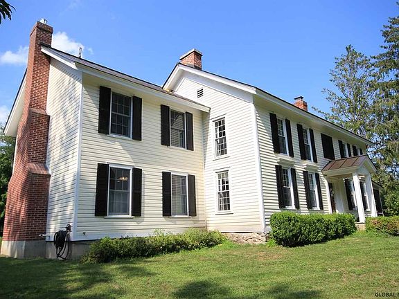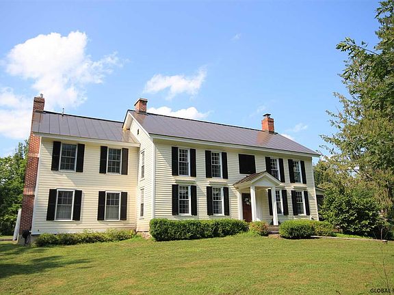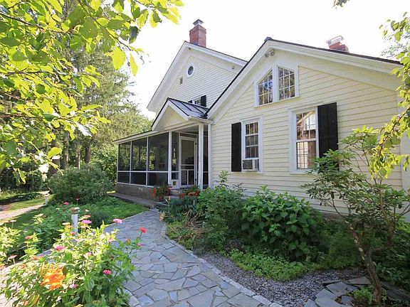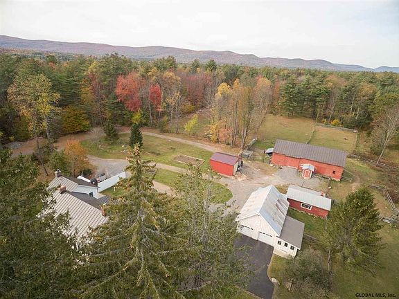 Gentleman's Farm located minutes from Saratoga Springs. 3 bdrm, 3.5 bath home w/Open concept kitchen w/SS appliances, solid countertops, large island, original wood burning fireplace. LR, DR w/ original features, hdwd floors and built in cabinetry. FR w/fireplace, sunroom w/ hot tub and screened porch w/ bluestone floor. Heated garage w/ kennel space, newer 24x28 metal building, 4 RUN-in stalls, 5 grass paddocks more land avail. Newer metal roof, exterior paint, Portage & Main Ecoburner 500, 300kw Generator