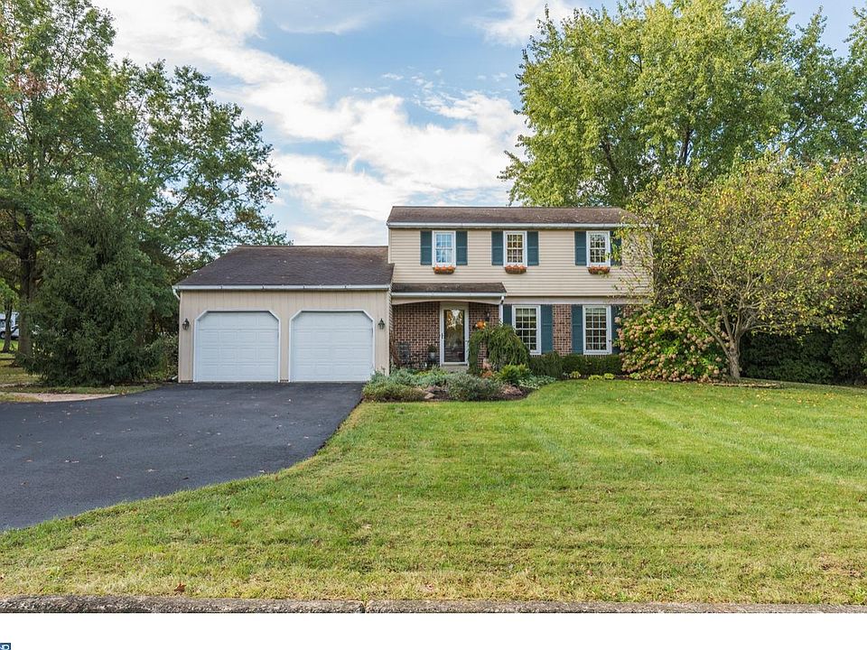 In lovely Perkasie Boro is a beautiful home so warm and welcoming you will never want to leave. Various natural woods, colorful floor coverings, tumbled marble, copper accents, a beautiful paver patio, bubbling water feature, sweet fenced garden and matching shed are only some of the features that make this house special. There is even a tire swing hanging from the shade tree on the half acre corner lot. This home asks you to come on in, put on your slippers, make a cup of tea and relax. A covered front door and window boxes full of pumpkins lead you into the foyer with hardwood floors, staircase to the left and living room to the right. Newly carpeted living room with fresh paint and sunny windows leads to the dining room with beautiful wood floors. The kitchen is a wonderful work space with tumbled marble backsplash with Mercer tile accents, task lighting, expansive cabinetry and a breakfast area open to the family room. Exposed beams in the kitchen and family room creates such a cozy space and a really cool barn door to the basement is a wonderful touch. The family room was opened up to create either one enormous family room with a wall of windows overlooking the lush landscaping - or furniture placement can create two rooms as it is now; a family room and a sunroom. A stone clad gas fireplace with muscular wooden mantle combined with all those windows, as well as Anderson Sliders to the paver patio, is a great place to curl up in on cool autumn nights. Powder room and laundry with pantry closet and built in cabinetry complete the first floor. On the second floor are four generously sized bedrooms and a full bath. One of the nice features of this house is the electric baseboard heat that means that each room is a unique zone. That and the low maintenance exterior make for an efficient home. The lot is a treat. Located on the corner of a cul de sac, in a community of wide streets and larger lots, such care has been taken to create a serene environment. Specimen plantings, shade trees, the sweetly fenced garden and the whispers of leaves and gentle burbles of the waterfall surround you with calm. Inside and outside this home is a beauty! Two car garage, unfinished basement and Pennridge School district.