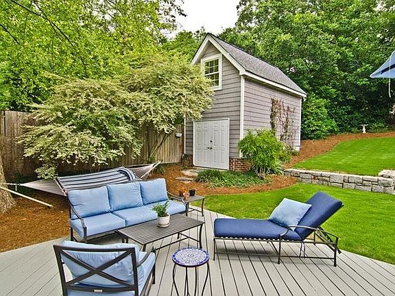 A true Peachtree Hills charmer! Large master suite w/vaulted ceiling, spa bath, cedar lined walk-in closet. Large open, light-filled kitchen w/granite, shaker style cabinets, breakfast bar and dining area. Incredible, hard-to-find walk-out backyard w/ deck- perfect for entertaining. Unique 10X20 garden shed w/2nd level studio space (potential home office/exercise room/yoga studio) & lots of storage. Charming front porch. Amazing n'hood & location- Walk to the duck pond, Garden Hills pool, playgrounds, shops and restaurants at P'tree Battle shopping center. A must see!