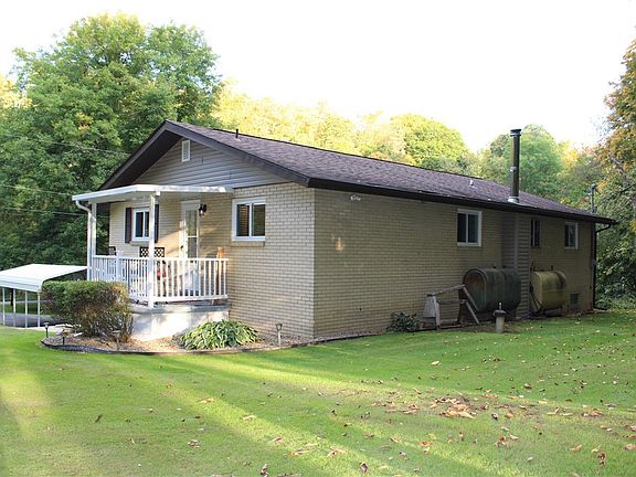 This all Brick Ranch home in the country is ready and waiting for you! 3 Beds, 2 Baths, new windows, and fresh paint throughout. Property is just under 5 acres, partially wooded, private and serene with a creek running through it. Gordon Brothers water filtration and chlorination system to ensure water quality with the well and public water project is in the planning stage. Additional outbuilding with water and power available for your storage needs. High Speed internet also available!