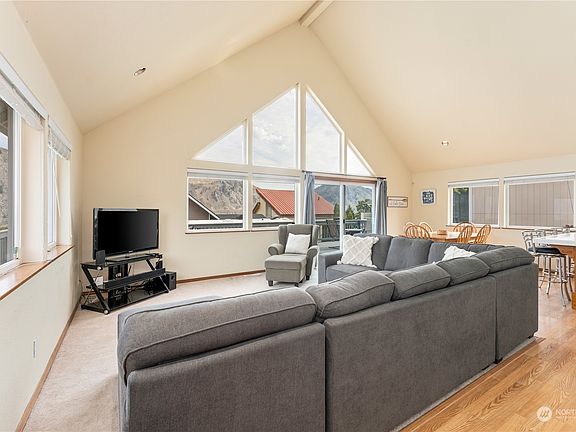 Come join the incredible Sun Cove / Lake Entiat Estates waterfront community ON the Columbia River. This 3 bed, 2.5 bath, 2,330sf home is sure to impress. Home features 2 beds & bath on the main floor along w/ large open kitchen w/ eating bar, living room w/ soaring vaulted ceilings & spacious dining area. Upstairs primary suite & full bath w/ jetted tub. Downstairs boasts HUGE bonus/bunk/game room. Oversized 1 car garage, huge wrap around deck, fenced front yard and TONS of parking both on the upper and lower level. Community amenities include a clubhouse, heated pool, basketball court, tennis/pickleball courts, 2 boat launches, 3 marinas, parks, community beach & lots of fun community activities! Only 15 min to Chelan's wine country.