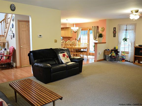 Privately set and perched in beds of flowers, ornamental grasses and lush lawn, this welcoming 3 bedroom, 2.5 bath home is beautifully maintained and ready for a new caring owner! Turnkey with pristine oak floors and newer carpets, a great kitchen with granite counters and breakfast bar and stainless steel appliances, central air, generator, recent washer/dryer, and more. Clear functional delineation on first floor with nice open adjoined public spaces. Impressive foyer leads into a large living room with propane fireplace, formal dining room and breakfast area that is integrated with the kitchen. The cozy Trex deck overlooking the ferns skirting your own woods is the informal alternative to the grand front porch with seasonal mountain views - a lovely place for morning coffee and newspapers, aperitif and late night firefly watching. Be close to the Catskills and the Ashokan Reservoir and only 15 minutes from Stone Ridge amenities. Half hour drive to Woodstock and Kingston.