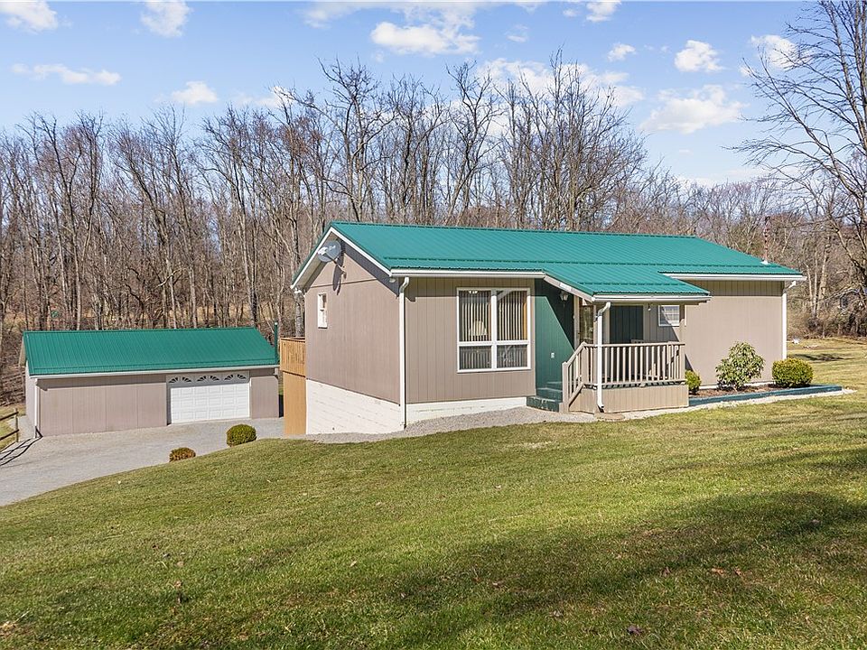 First time offered! Situated on just under an acre in Riverside School District, this solid built ranch is the perfect downsizer or starter. Huge heated 3 car detached garage with newer metal roof for the mechanic or woodworker in the family! Inside is warm and welcoming with wood trim throughout. Large eat in kitchen with oak cabinetry & plenty of counterspace. 17X12 Living room with floor to ceiling windows perfect for watching nature. Amazing deck overlooking the beautiful yard that backs to the woods. Privacy abounds. Large 15X12 owner's suite with double closets & ceiling fan. Second bedroom is also a great size and houses the laundry area. This would make a great den as well. Spacious full bath with linen closet, oak vanity, ceramic tile flooring & hall closet for extra storage. Additional storage under the back patio. Well insulated. Minutes to dining, shopping, golf course & more. If you're ready to downsize your home, but not your yard or privacy this is the one!