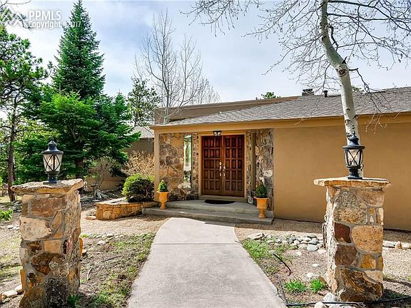 Own your own custom-designed golf course home on large lot in the heart of desired Woodmoor! One-of-a-kind multi-level architecture featuring: solid wood floors, custom wood doors, custom stone wall and fireplace, custom chef's cabinets, granite counters, center island with seating, stainless steel appliances, walk-in pantry, dimming pendant lighting and multi-deck outdoor space with private but open hot tub area. Enjoy beautiful tall pines in spacious yard with amazing views but retaining treed privacy. This is a must see!
